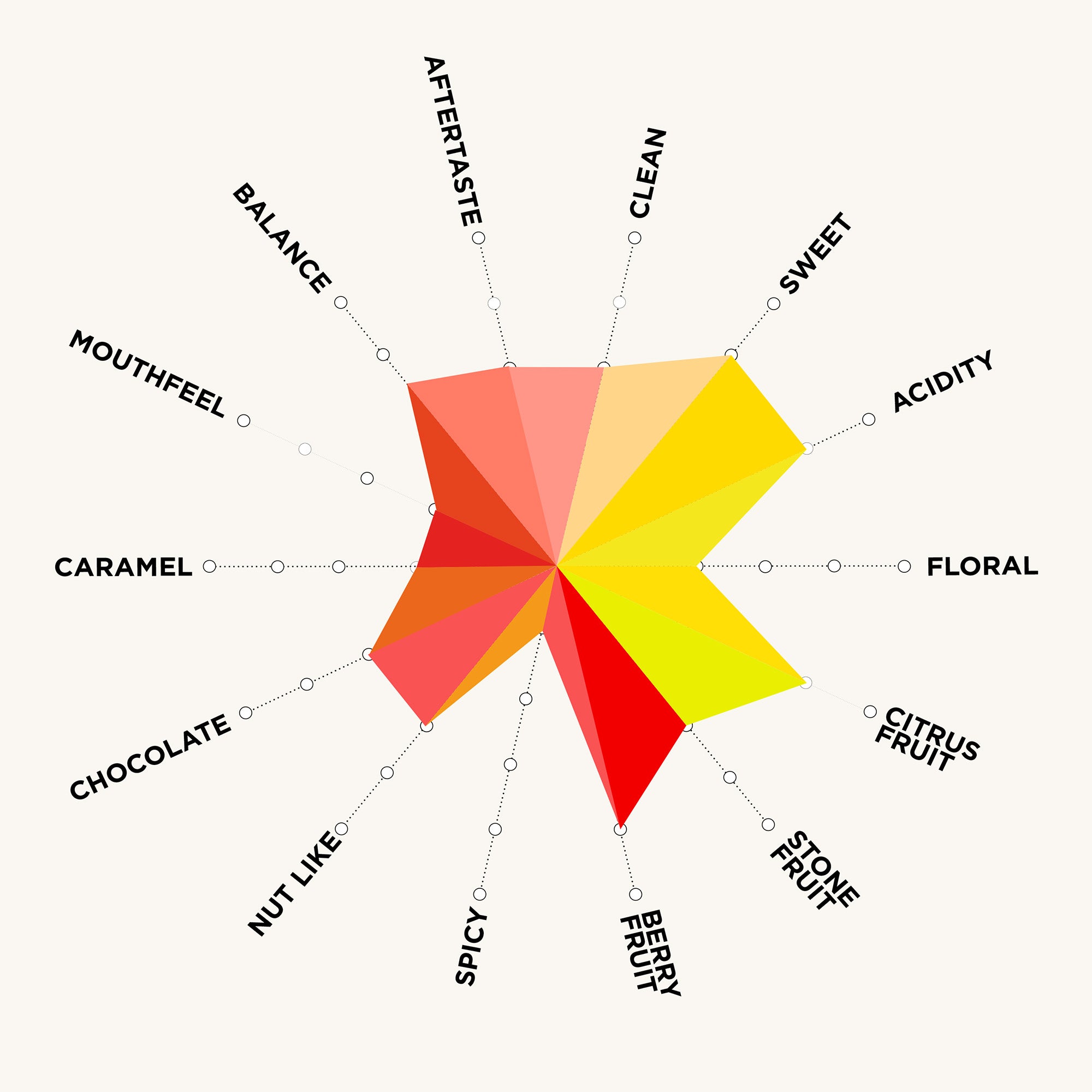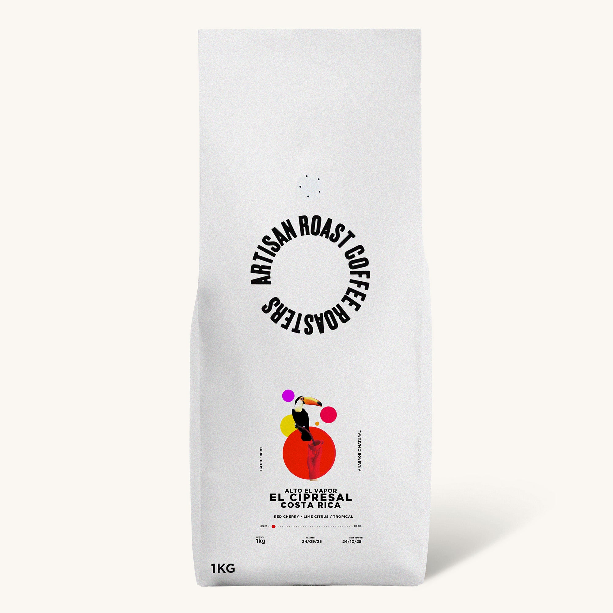 We’ve given this fruit forward Catuaí a light roast to make the most of this careful and controlled anaerobic process. Red cherry, cranberry and lime citrus are the main flavours followed by tropical fruit and raspberry notes for added vibrancy. A nougat-like sweetness and brownie chocolate foundation add extra balance and a dessert like feel underneath a lively and integrated acidity. A medium intensity syrupy mouthfeel rounds everything in a structured, clean and vibrant coffee.